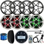 Enrock マリンゲージスタイル Bluetoothレシーバーバンドル 4 x 6.5インチ 防水 2ウェイ マルチカラーLEDスピーカー クローム/ホワイトグリル付き LEDリモコン